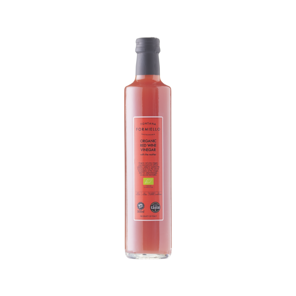 The natural fermentation and barrel-ageing of selected organic Italian grapes gives this red wine vinegar an appealing cloudy rose-pink colour and a balanced, fruity aroma. Unpasteurised, unfiltered and with no added sulfites, it is rich in live bacteria and contains the nutritious 'mother'.